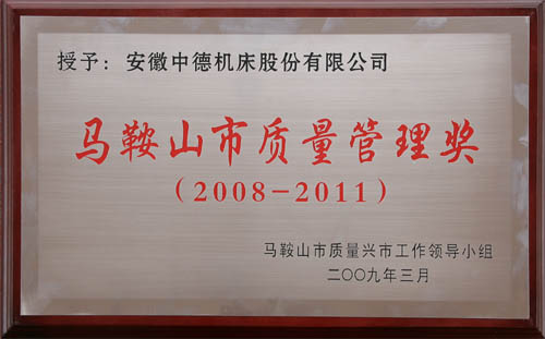 我公司获“第二届马鞍山市品质办理奖”