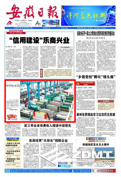 本日(2009年(nian)11月(yue)11日)《安徽日报》头版刊载《博(bo)望机床(chuang)销四方》的(de)图片消息报道。在我公(gong)(gong)司大型车(che)间图片中(zhong),配出以下笔墨(mo)报道:1就在今(jin)年(nian)1月(yue)份6日,处在当(dang)涂县博(bo)望镇的(de)民(min)营公(go♌ng)(gong)司工厂(chang)河南(nan)中(zhong)德(de)数(shu)控(kong)车(che)床(chuang)股分非常公(gong)(gong)司主产药厂(chang)车(che)间里一(yi)个忙碌的(de)一(yi)天。该工厂(chang)上年(nian)前三第二季度发卖量(liang)环比增(zeng)长(zhang)率新增(zeng)35%,有(you)机物出口(kou)额30若干之域和地区性。(特约服务拍摄(she) 谢富乐)