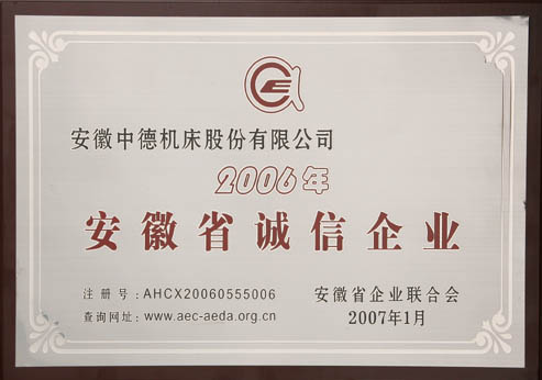 克日我公司被安徽省企业结合会评为2006年“安徽省诚信企业”。